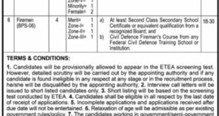 The Federal Govt. Civil Defence Training School Abbottabad required the services of a Bomb Disposal Technician, Superintendent, Junior Instructor, Computer Operator, Steno Typist, Cinema Operator, Driver, Demonstrator, Demonstrator, Drill Instructor, Upper Division Clerk, Section Leader, Lower Division Clerk, Naib Qasid, Chowkidar, and Cook. Further more updates, Visits our website APKetc.Com …