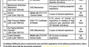 Sui Southern Gas Company Limited (SSGCL) job openings in 2022 SSGC Jobs such as Welder Steel, Fabricator, Mechanical Technician, Drivers, High-pressure Welder, Hot Taping Machine Operator, and Crane Operator are now available at SSGC LPG (Pvt.) Limited in Port Qasim, Karachi. This position will be advertised in the newspaper on …